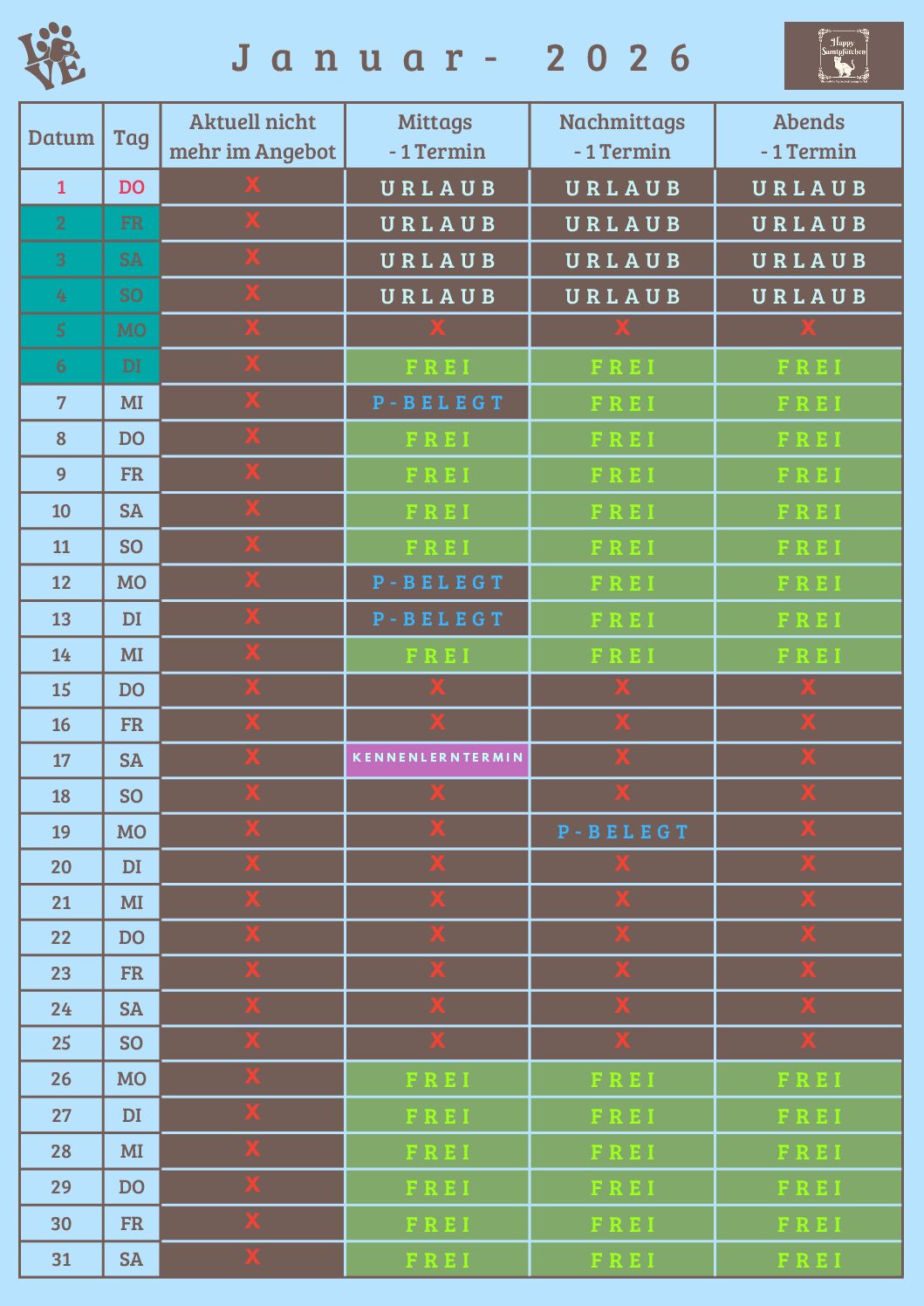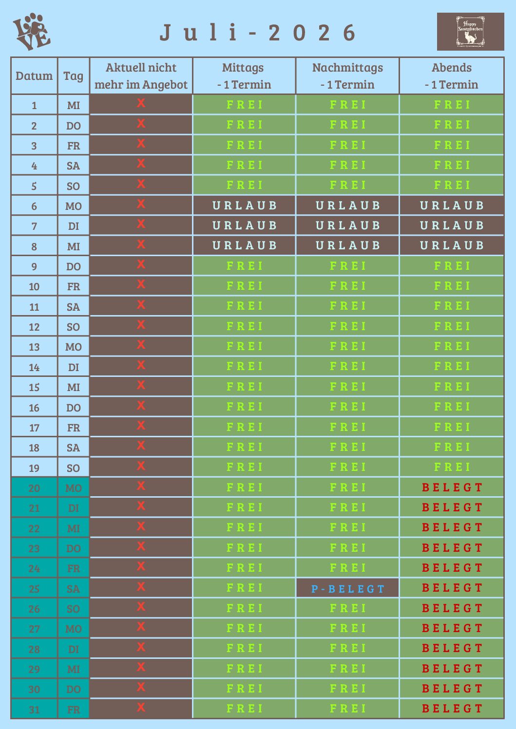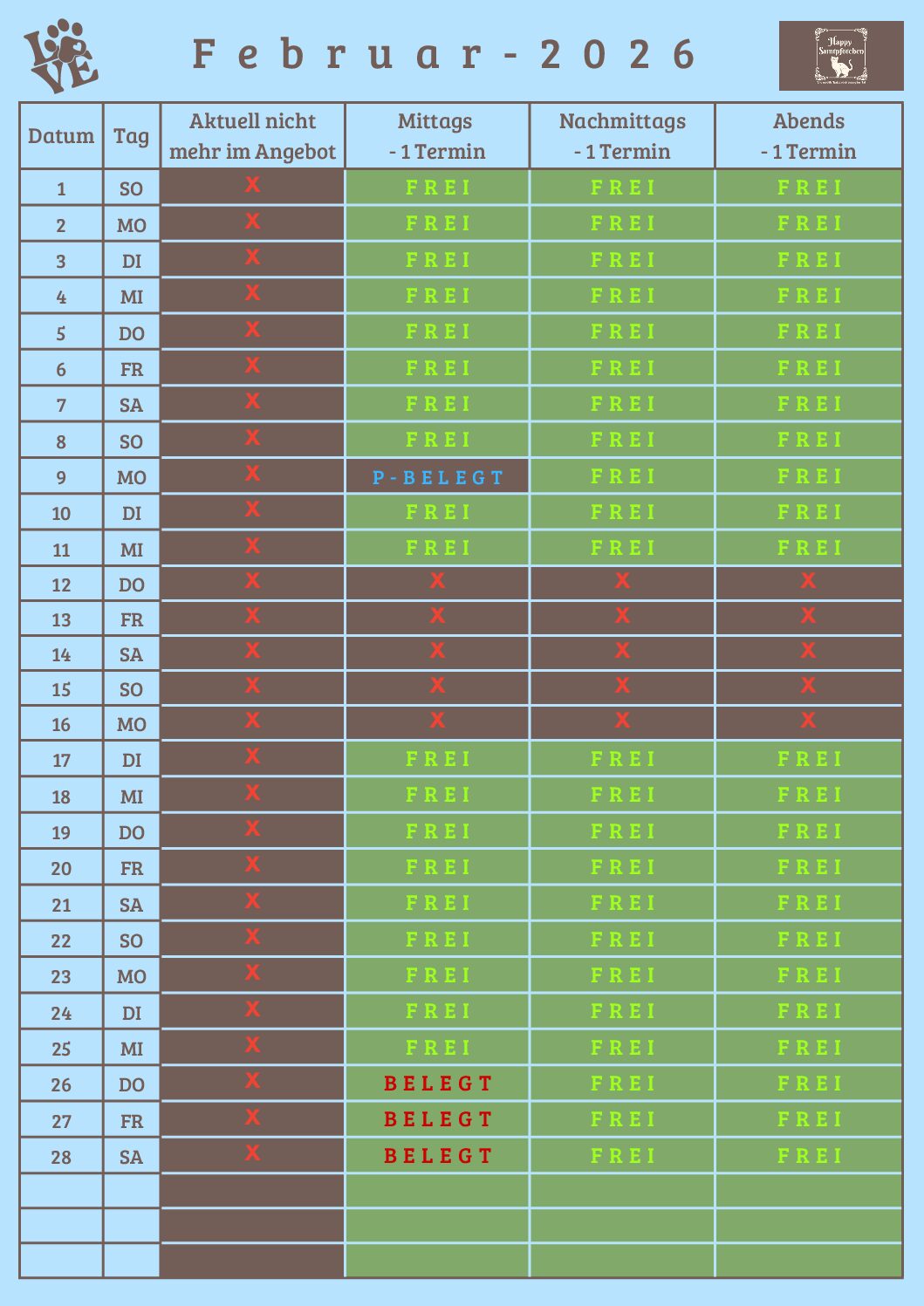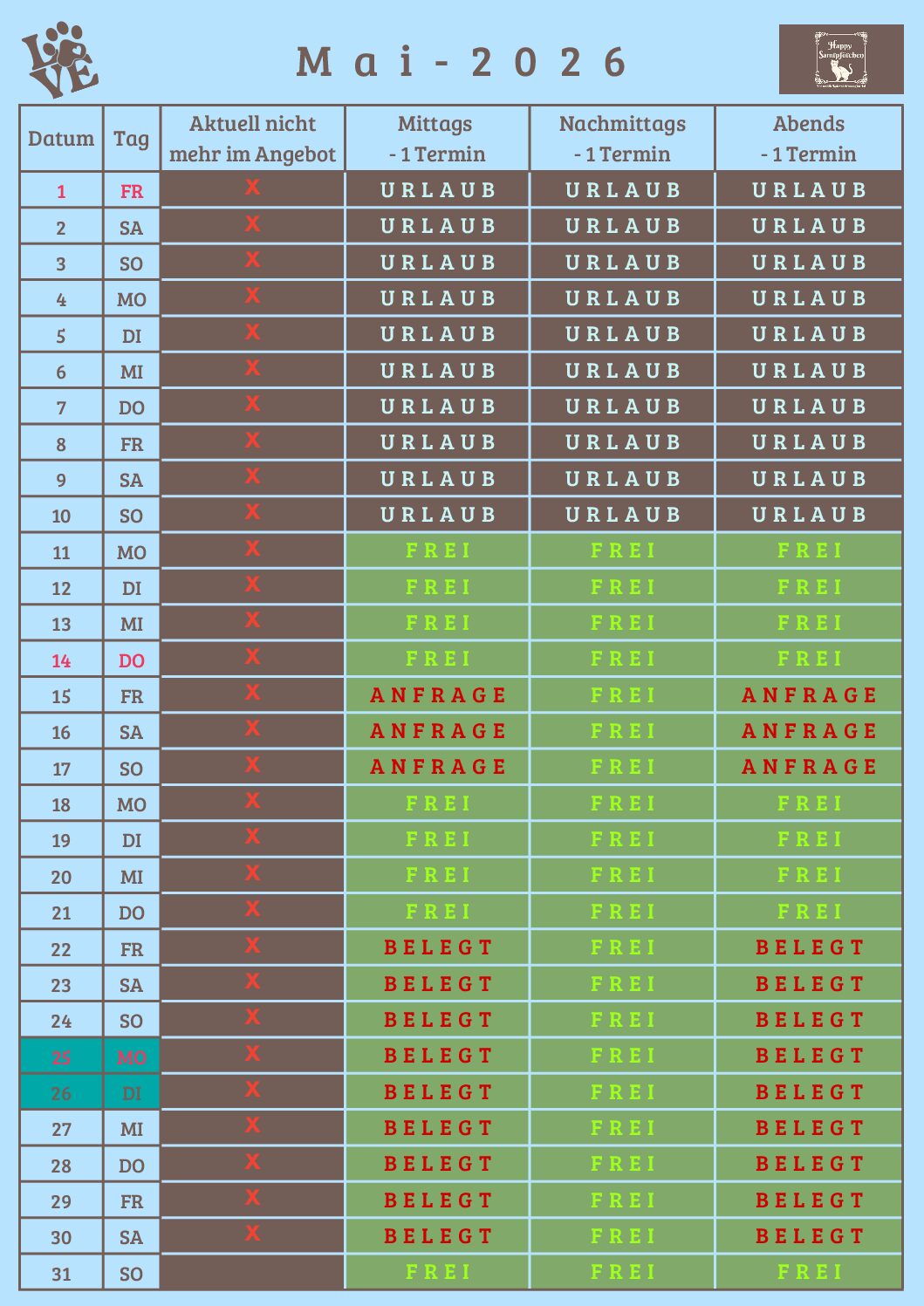 – Bitte immer mal wieder reinschauen, aufgrund von Änderungen ist vielleicht der Wunschtermin doch noch/wieder frei – Ihr könnt gerne auch anfragen –