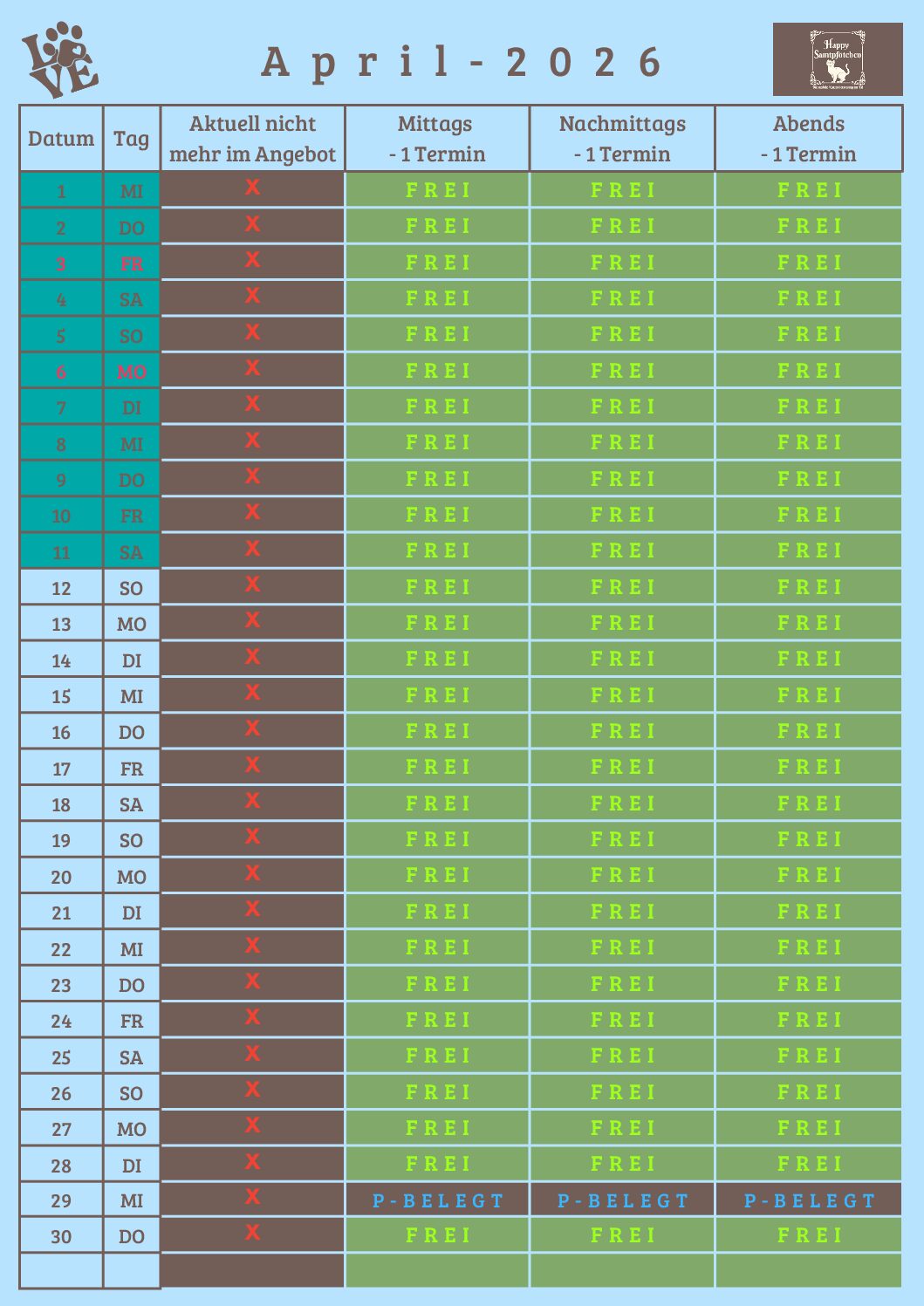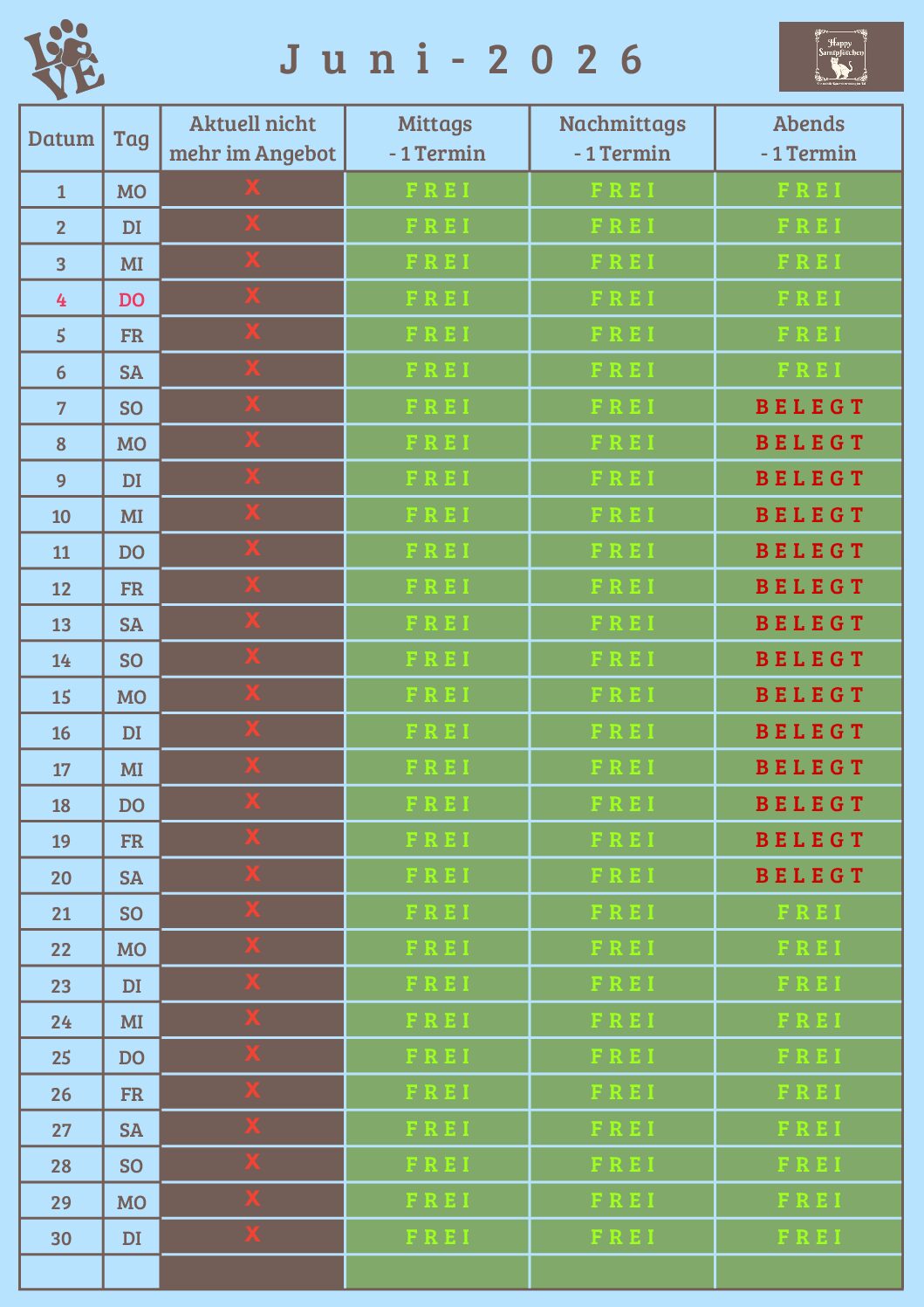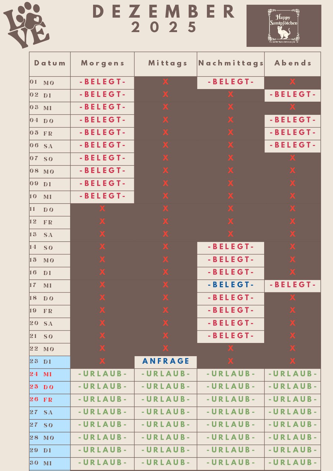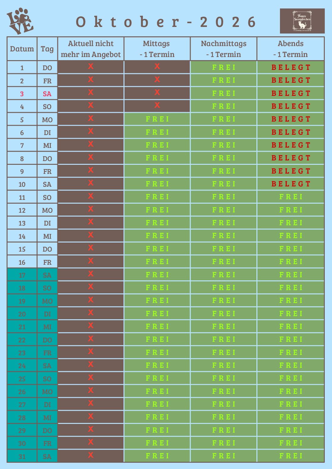 – Bitte immer mal wieder reinschauen, aufgrund von Änderungen ist vielleicht der Wunschtermin doch noch/wieder frei – Ihr könnt gerne auch anfragen –