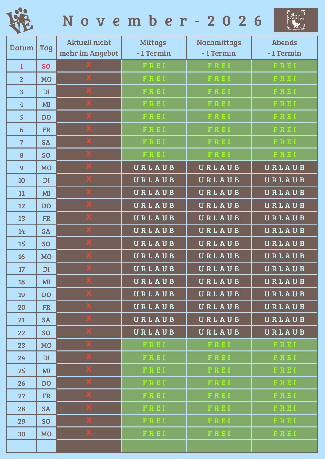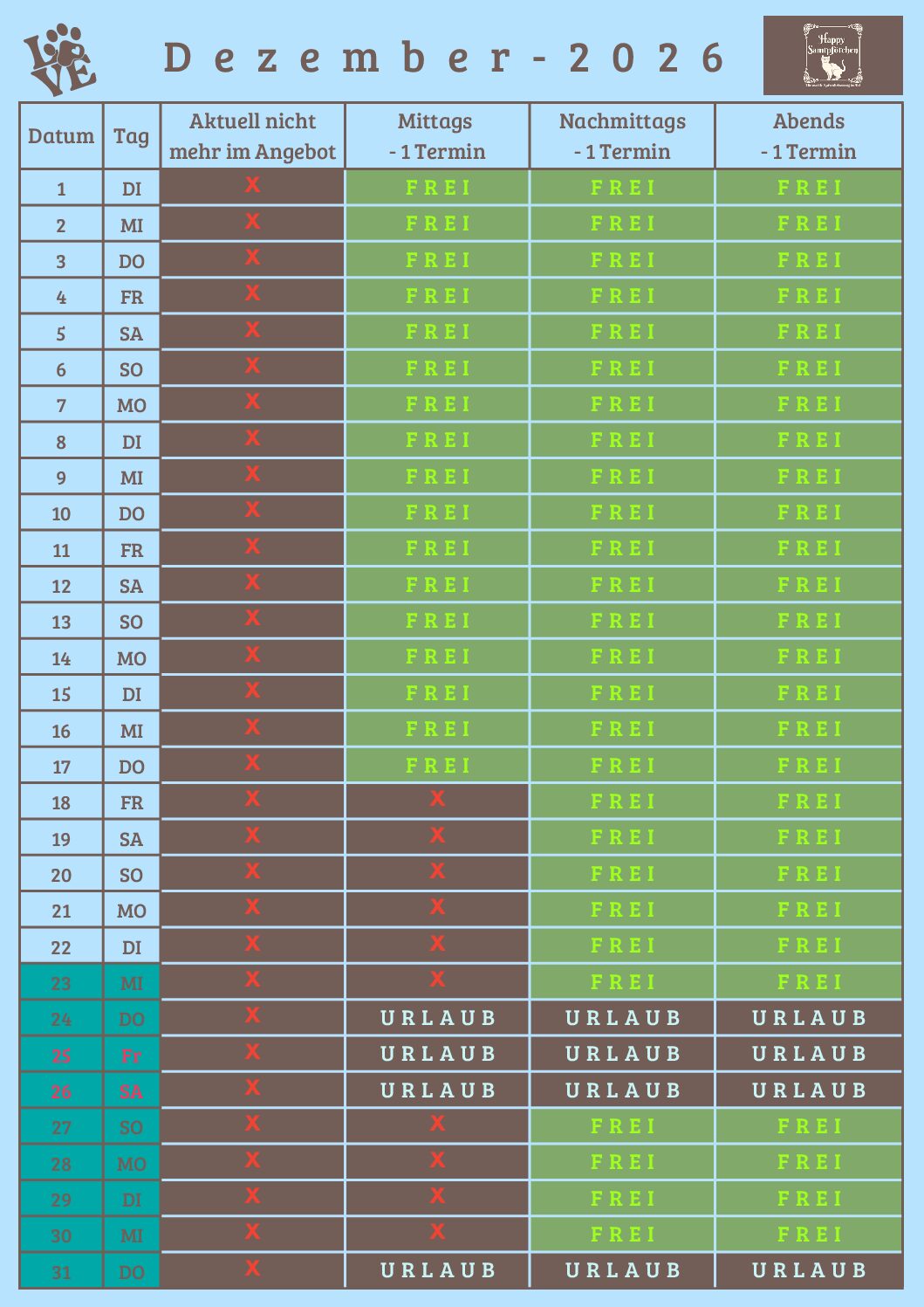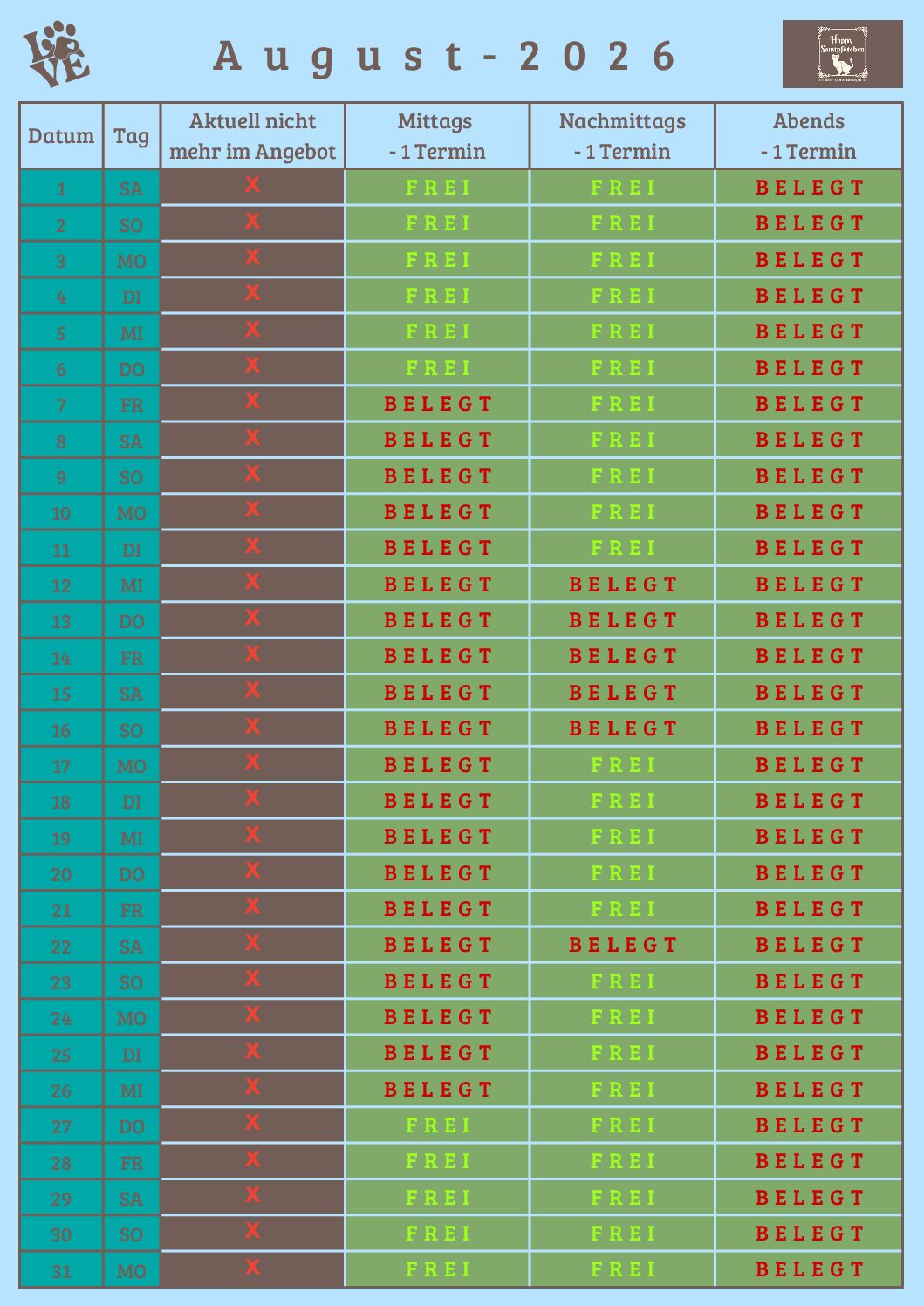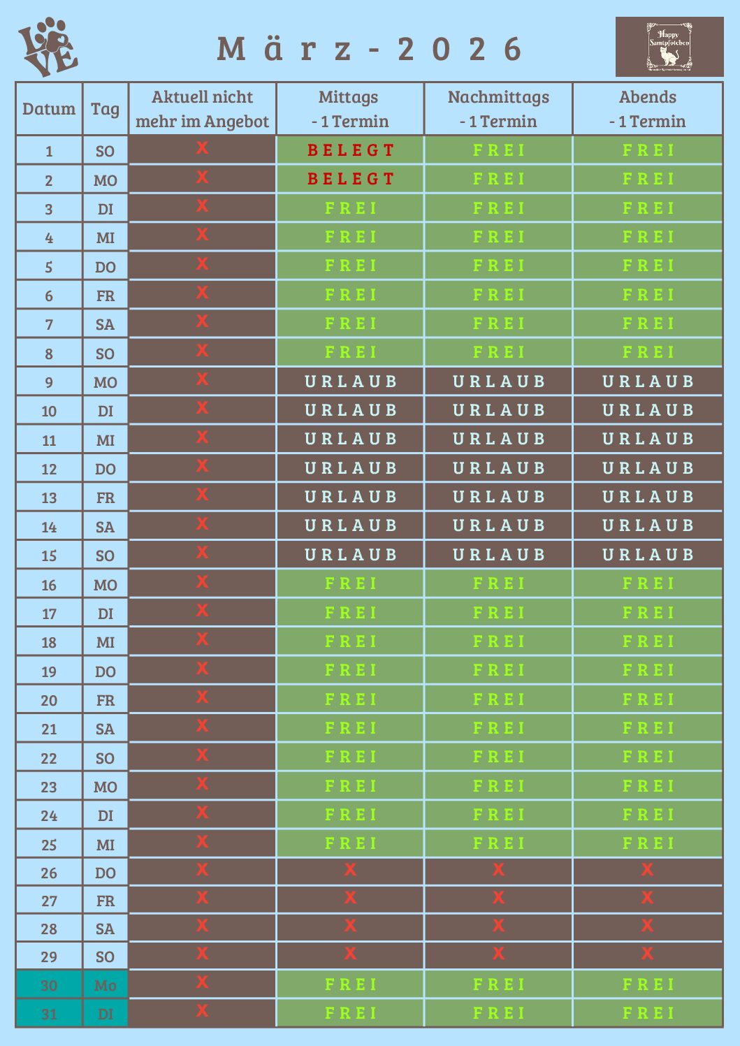 – Bitte immer mal wieder reinschauen, aufgrund von Änderungen ist vielleicht der Wunschtermin doch noch/wieder frei – Ihr könnt gerne auch anfragen –